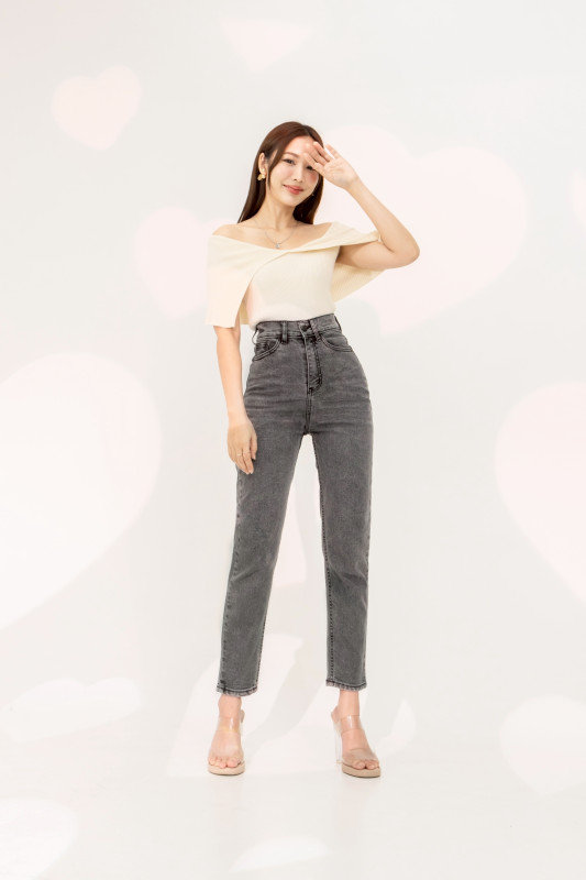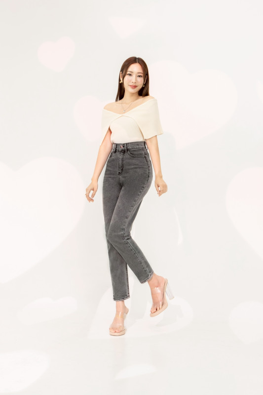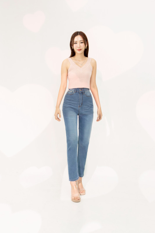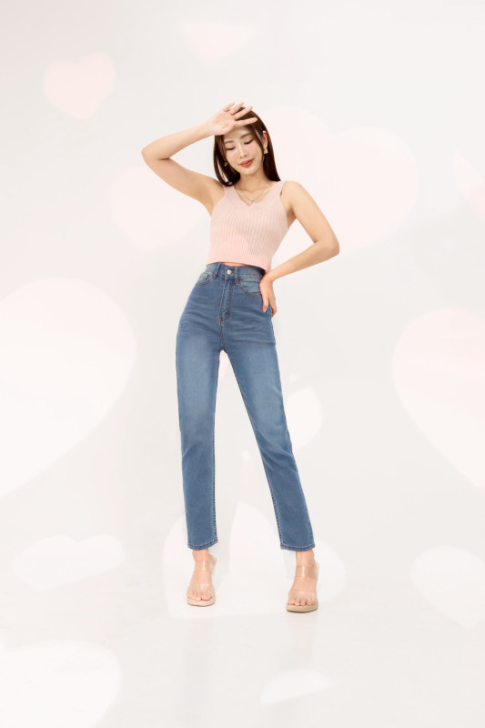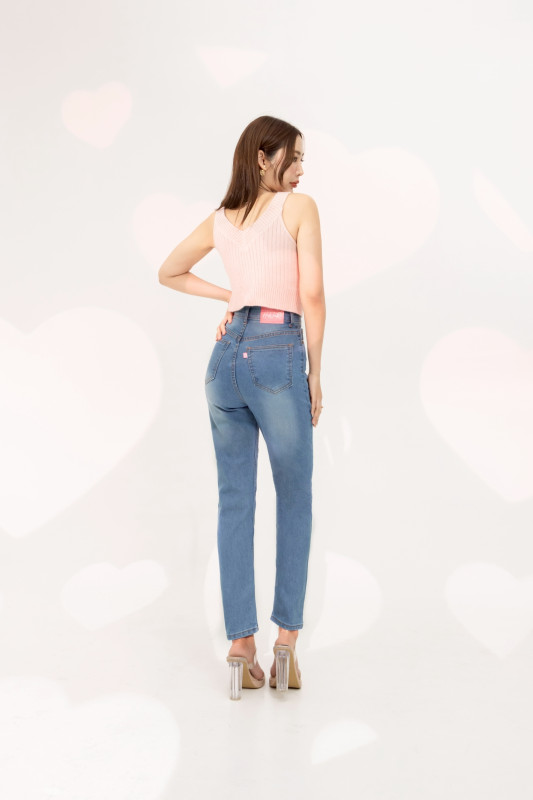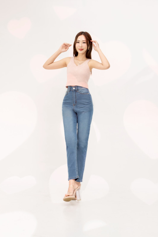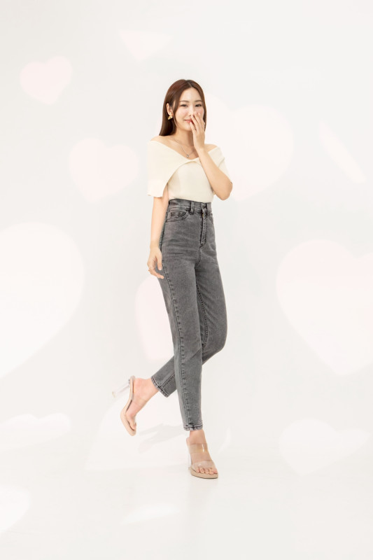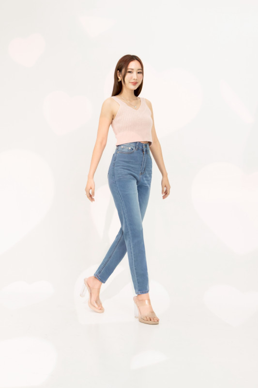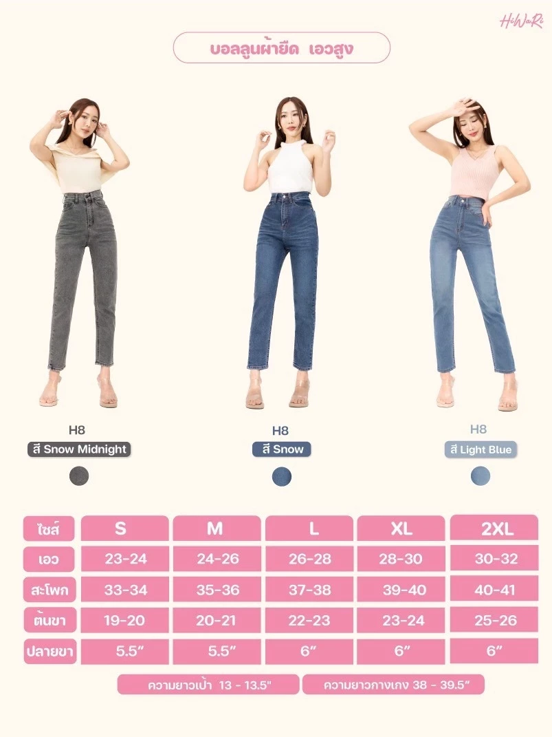 กางเกงยีนส์ รุ่น H8 ทรงบอลลูน ผ้ายืด เอวสูงเหนือสะดือ